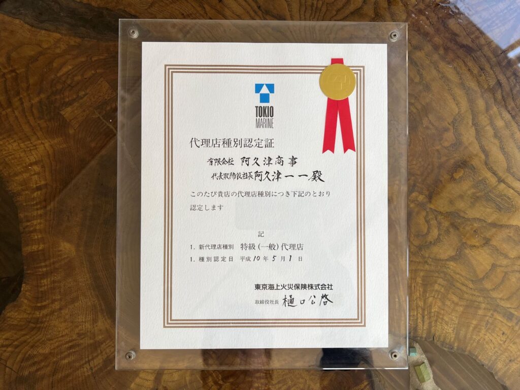 各保険会社から特級種別認定代理店の認定を受ける(全国で約0.5%)